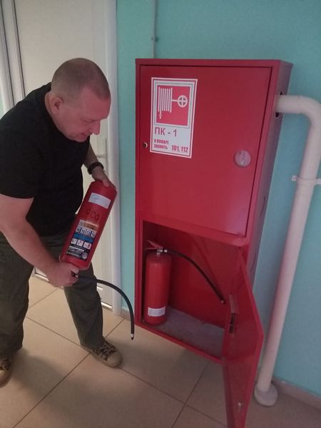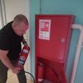 Сотрудниками были предприняты действия по тушению условного пожара первичными средствами пожаротушения - огнетушителями, находящимися в коридоре 2 этажа. Условно пострадавший при пожаре был эвакуирован рабочим персоналом. Ему оказана первая доврачебная помощь. Дежурным электриком сразу после оповещения о пожаре было отключено от электроэнергии здание стадиона. Все работники учреждения собрались в точке сбора при пожаре.