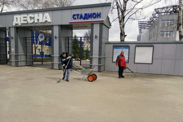 Сотрудники ЦСП наводили порядок на прилегающей к стадиону «Десна» территории, а также вместе со спортивной общественностью Брянска убирали мусор в сквере им. Н.А. Щорса.