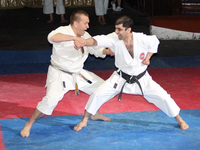 Гости из Москвы , руководители национальных федераций каратэ Игорь Садовников 6 дан, Ваник Арутюнян 6 дан и Дмитрий Кобзев 5 дан удивили зрителей демонстрацией мастерских техник ката и кумитэ классической школы каратэдо Шотокан.