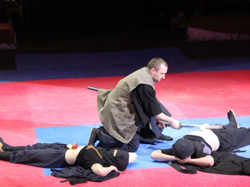 Именно представители этого направления карате и открывали программу показательных выступлений. Присоединился к спортсменам и Витольд Петровский, сменивший концертный костюм на кимоно. Представители Кёкушинкай по традиции приготовили тамешивари. В этом году на смену ледяным глыбам пришли бетонные плиты и деревянные бруски.