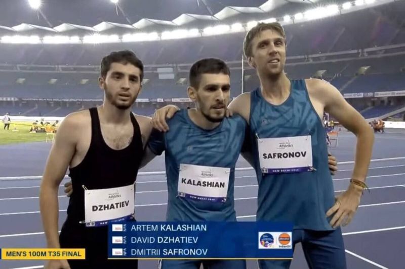 В беге на 100 метров в классе Т35 российские спортсмены не оставили шансов соперникам и завоевали все три медали. А "золото" и "серебро" на счету спортсменов регионального ЦСП. Первое место занял — Заслуженный мастер спорта Артём Калашян (тренеры Артем Сумичев, Виталий Овчинников), установив рекорд чемпионатов мира — 11,55 секунды! Второе место у еще одного спортсмена ЦСП Брянской области Давида Джатиева. Бронза — еще у одного россиянина Дмитрия Сафронова.